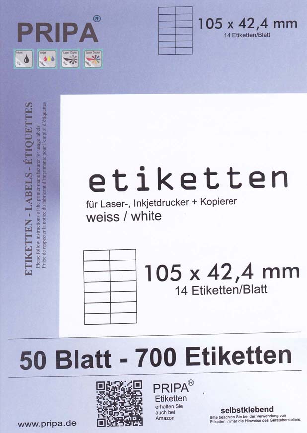 50 Blatt pro Packungseinheit = 700 Etiketten